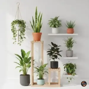Hanging Planters: These attach to your ceiling and don’t use any floor space. You can hang them at different heights to create a “jungle” effect.