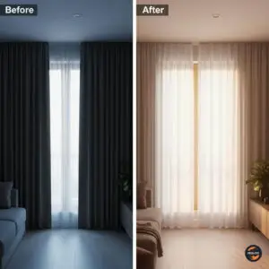 Light-Colored Curtains: White or light beige curtains reflect light into your room instead of absorbing it.